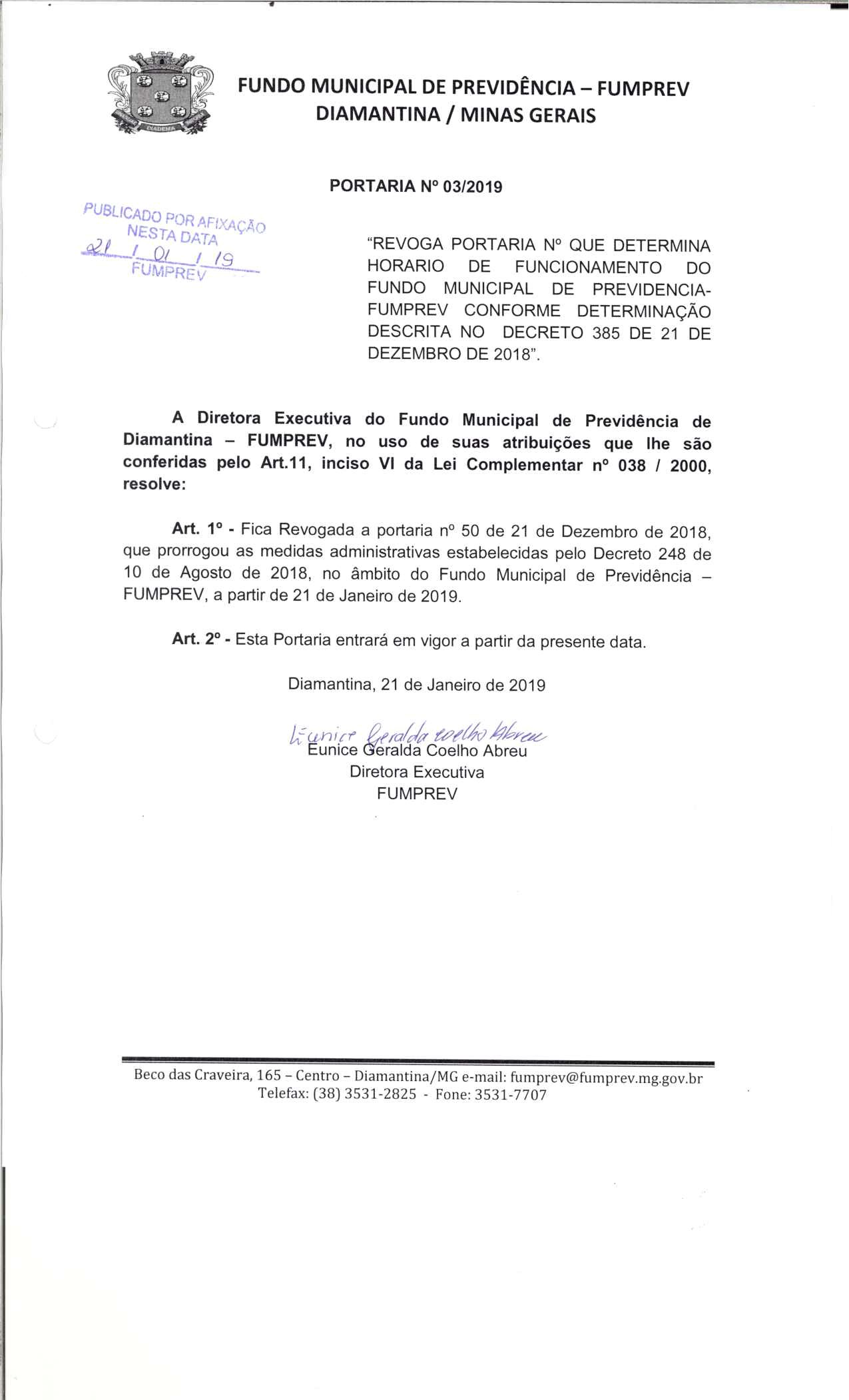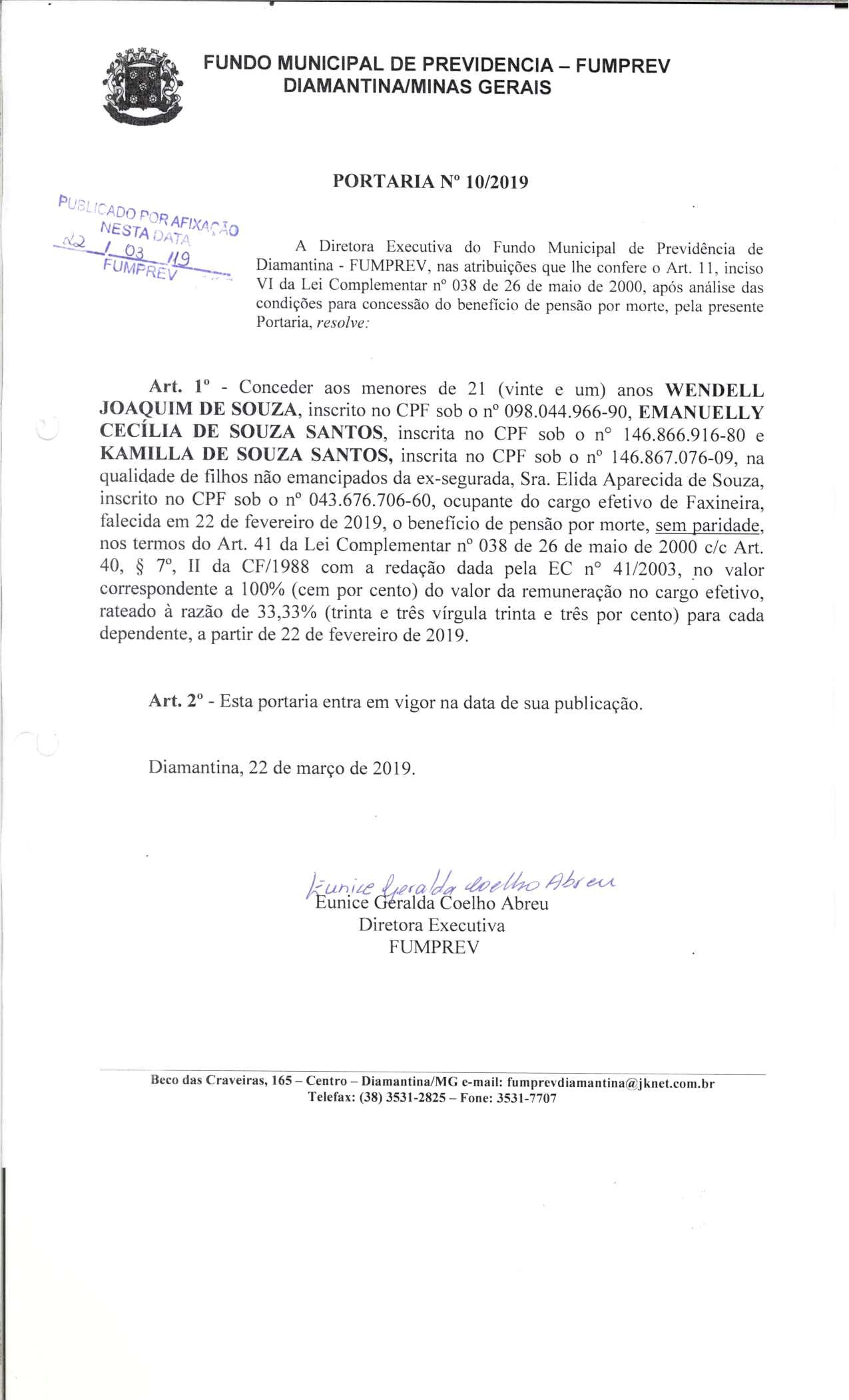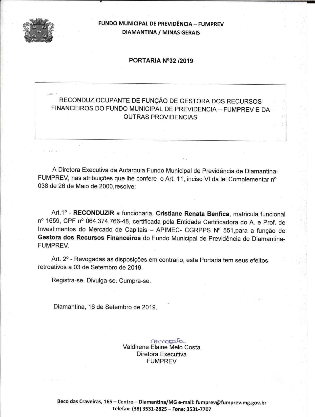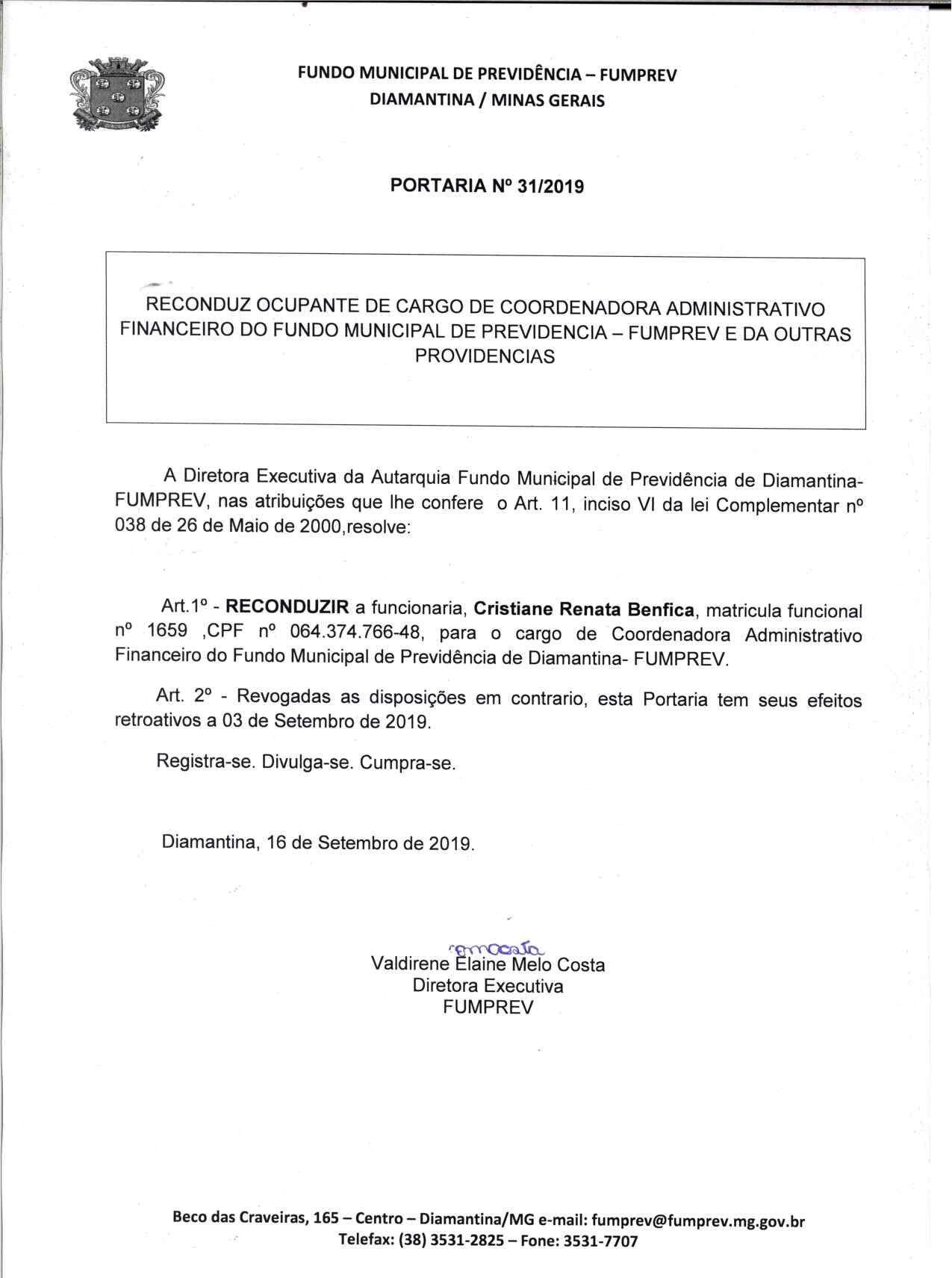Portaria 019 - Maria Cleusa Soares de Almeida Souza