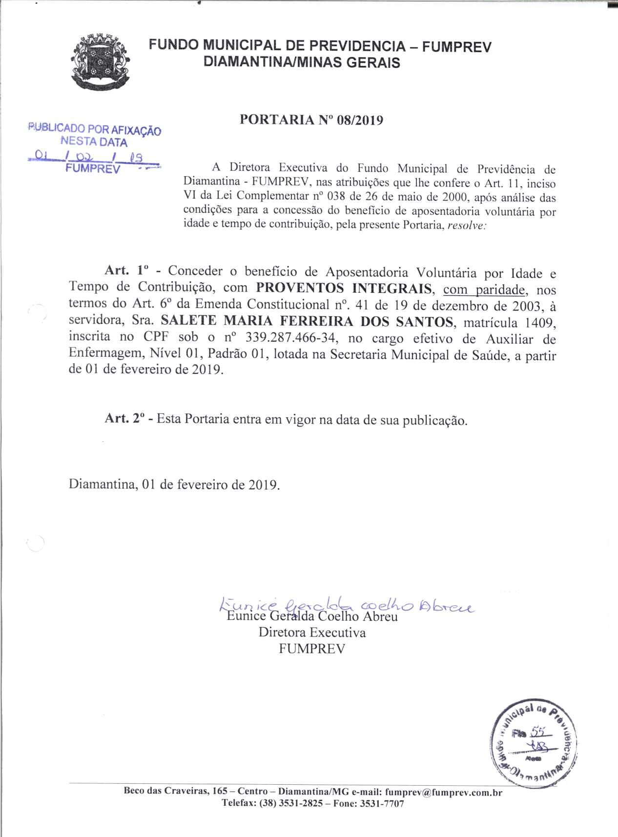 Portaria 08 - Salete Maria Ferreira dos Santos