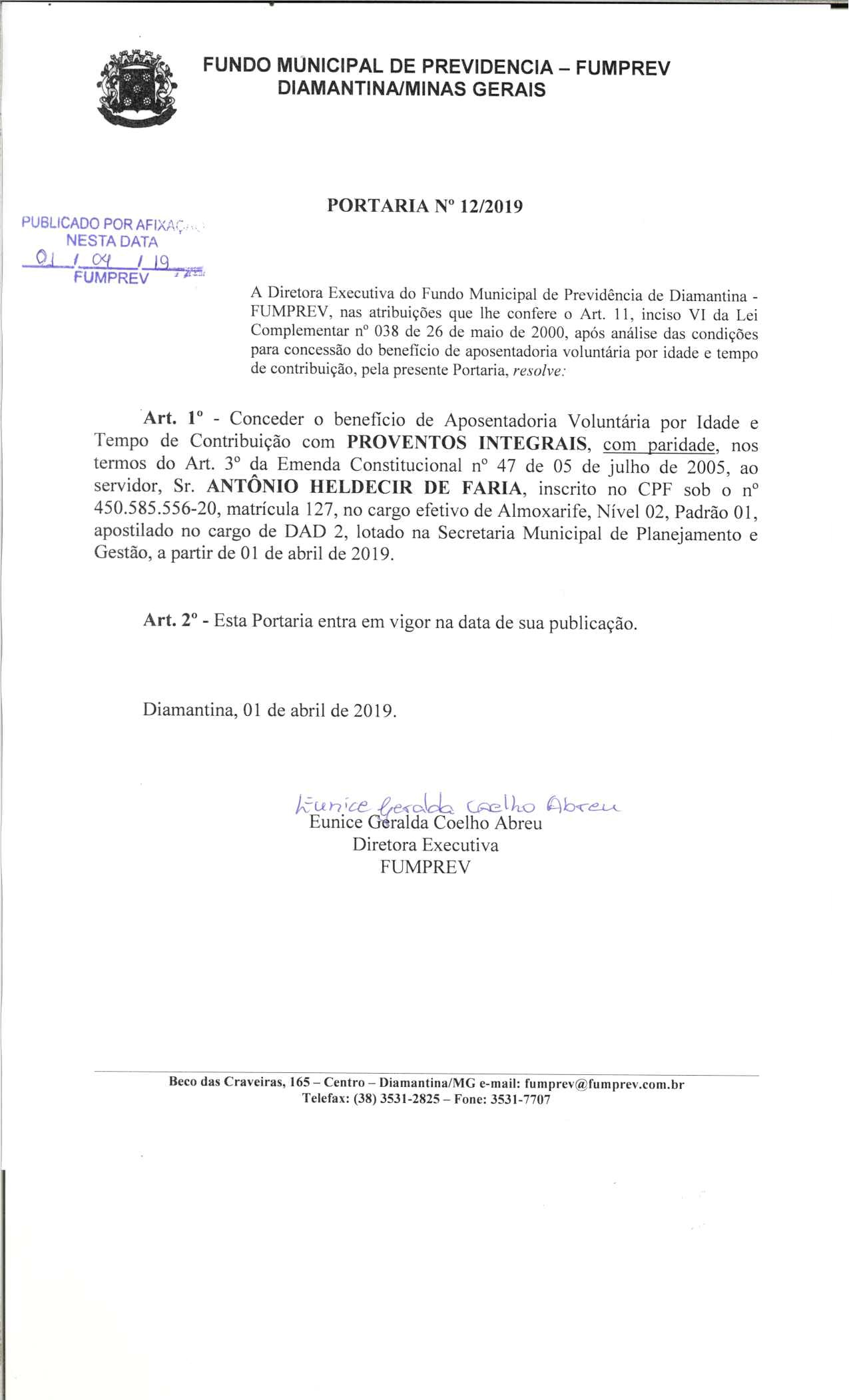 Portaria 12 - Antônio Heldecir de Faria
