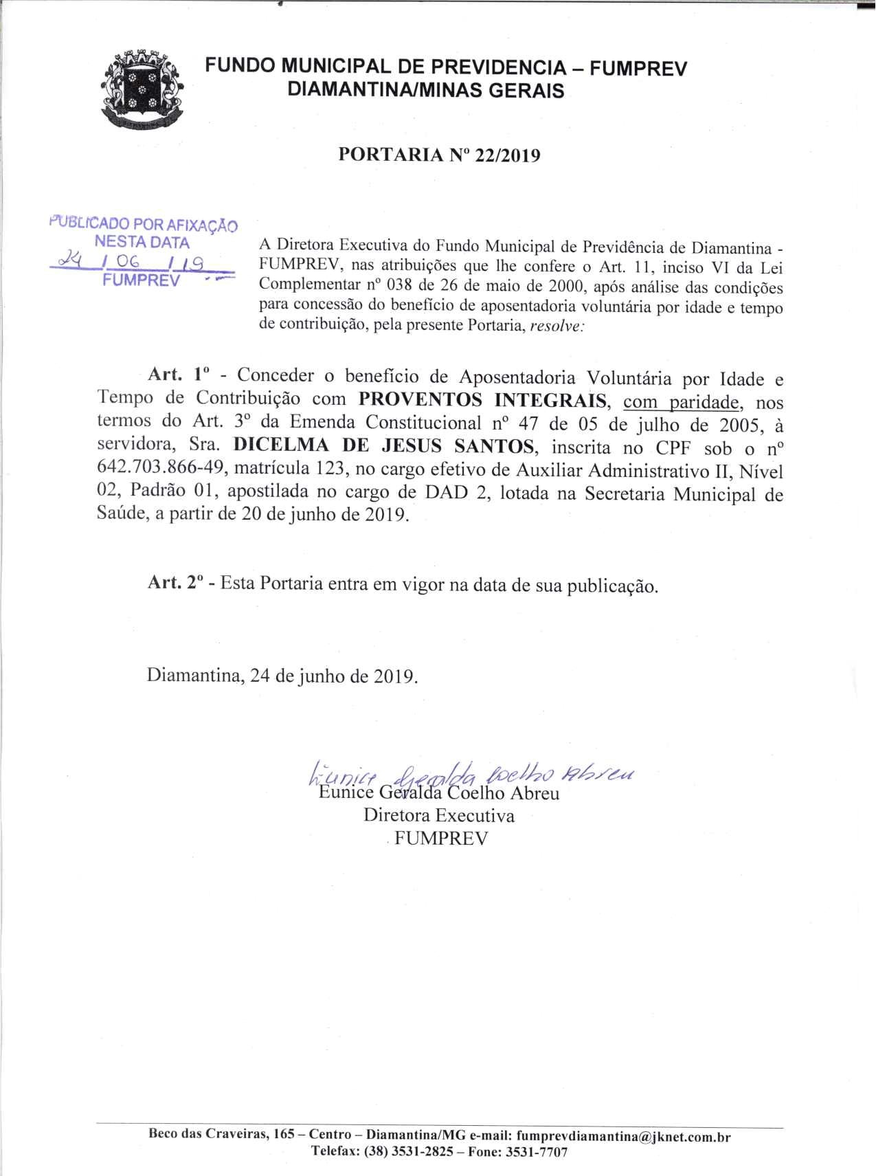 Portaria 022 - Dicelma de Jesus Santos