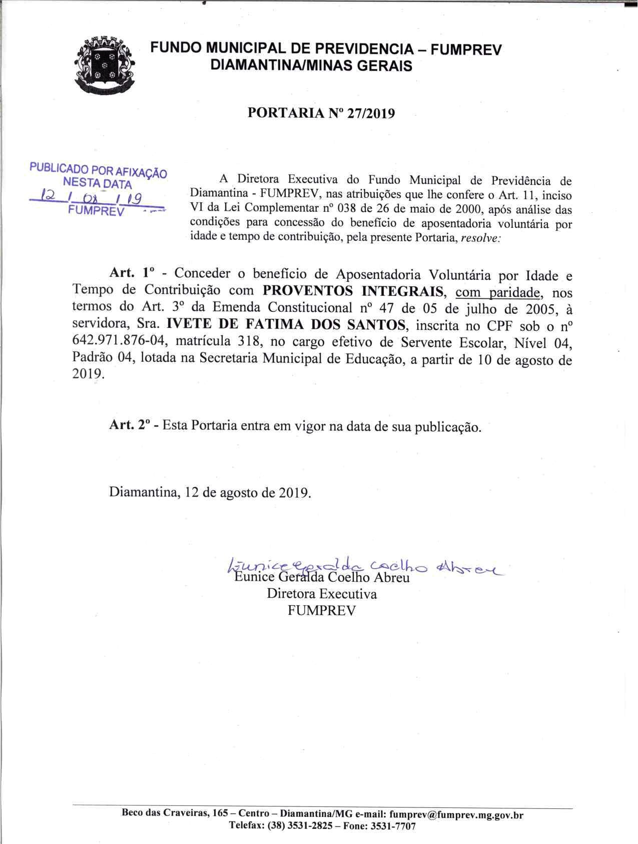Portaria Nº 27 - Ivete de Fatima dos Santos