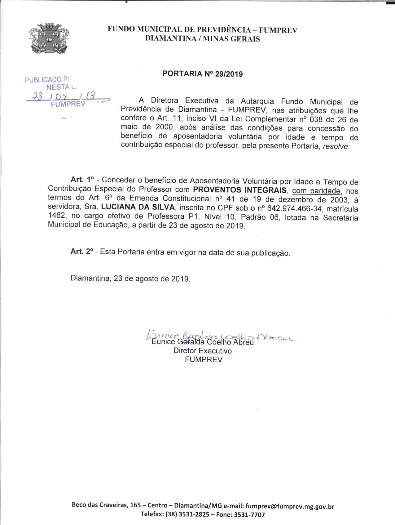 Portaria Nº 29 - Luciana da Silva