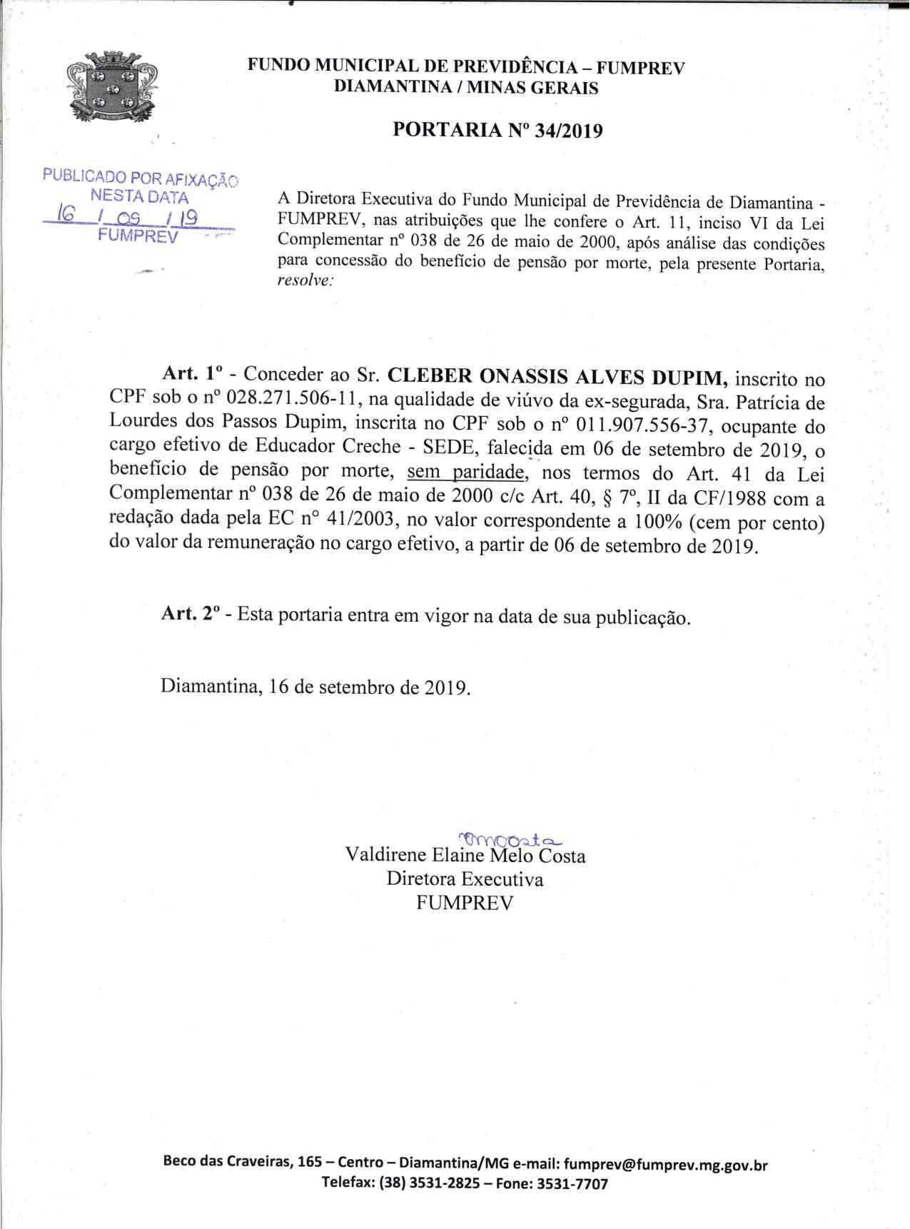 Portaria 34 - Cléber Onassis Alves Dupim