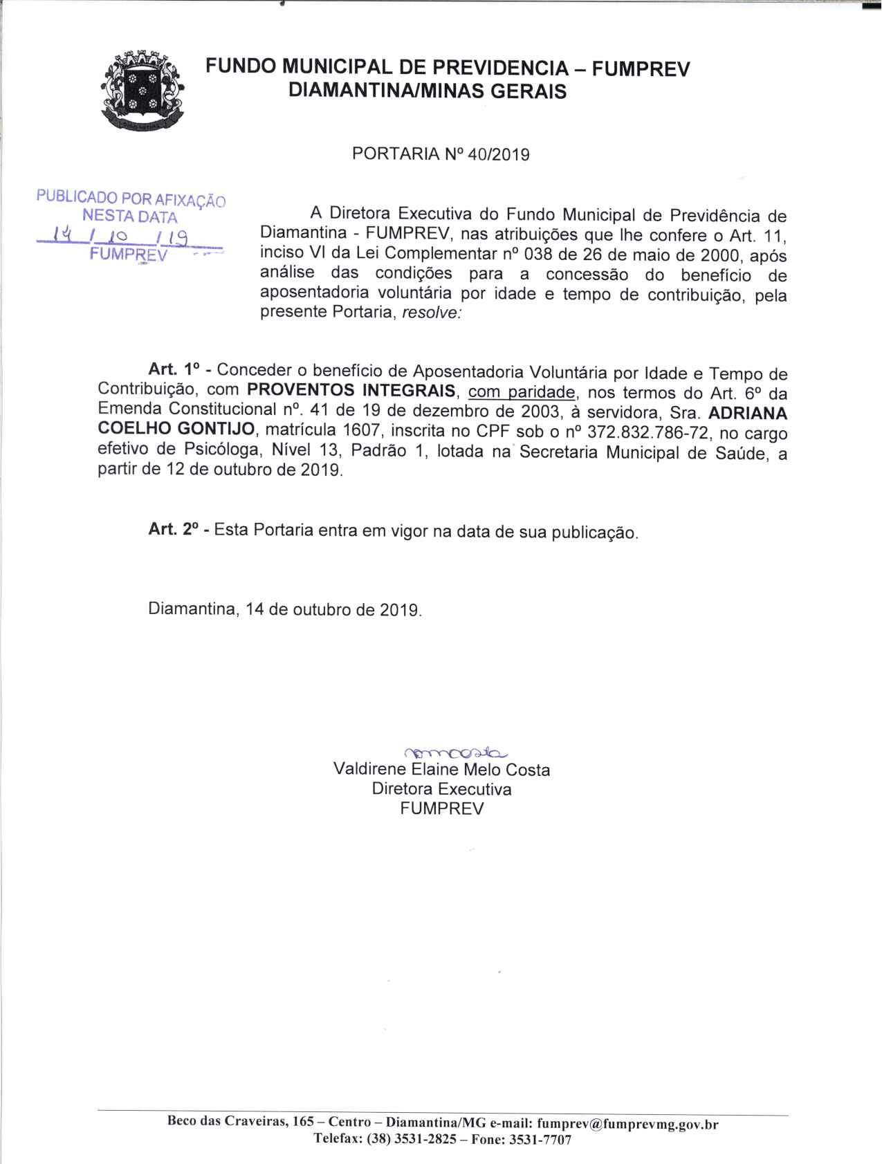 Portaria 40 - Adriana Coelho Gontijo