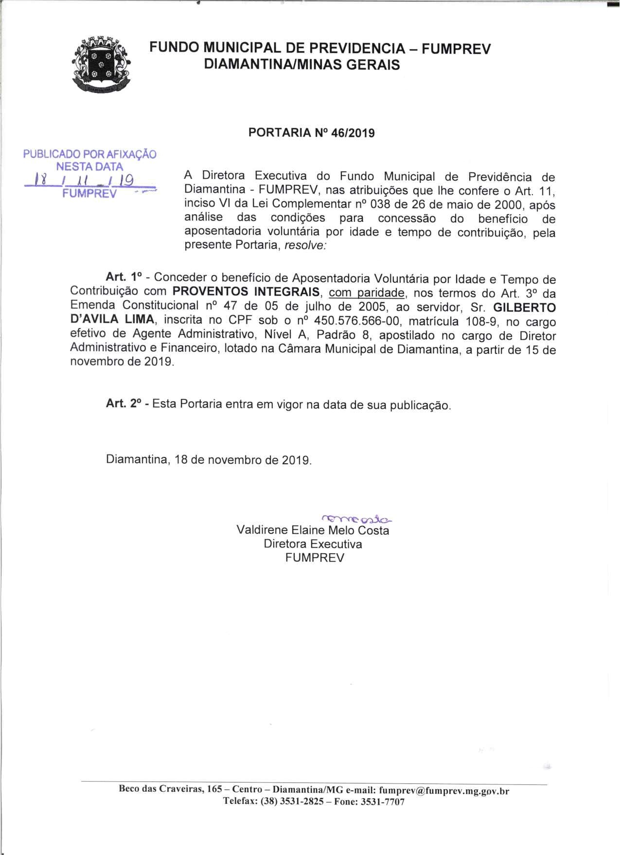 Portaria 46 - Gilberto D'Avila Lima