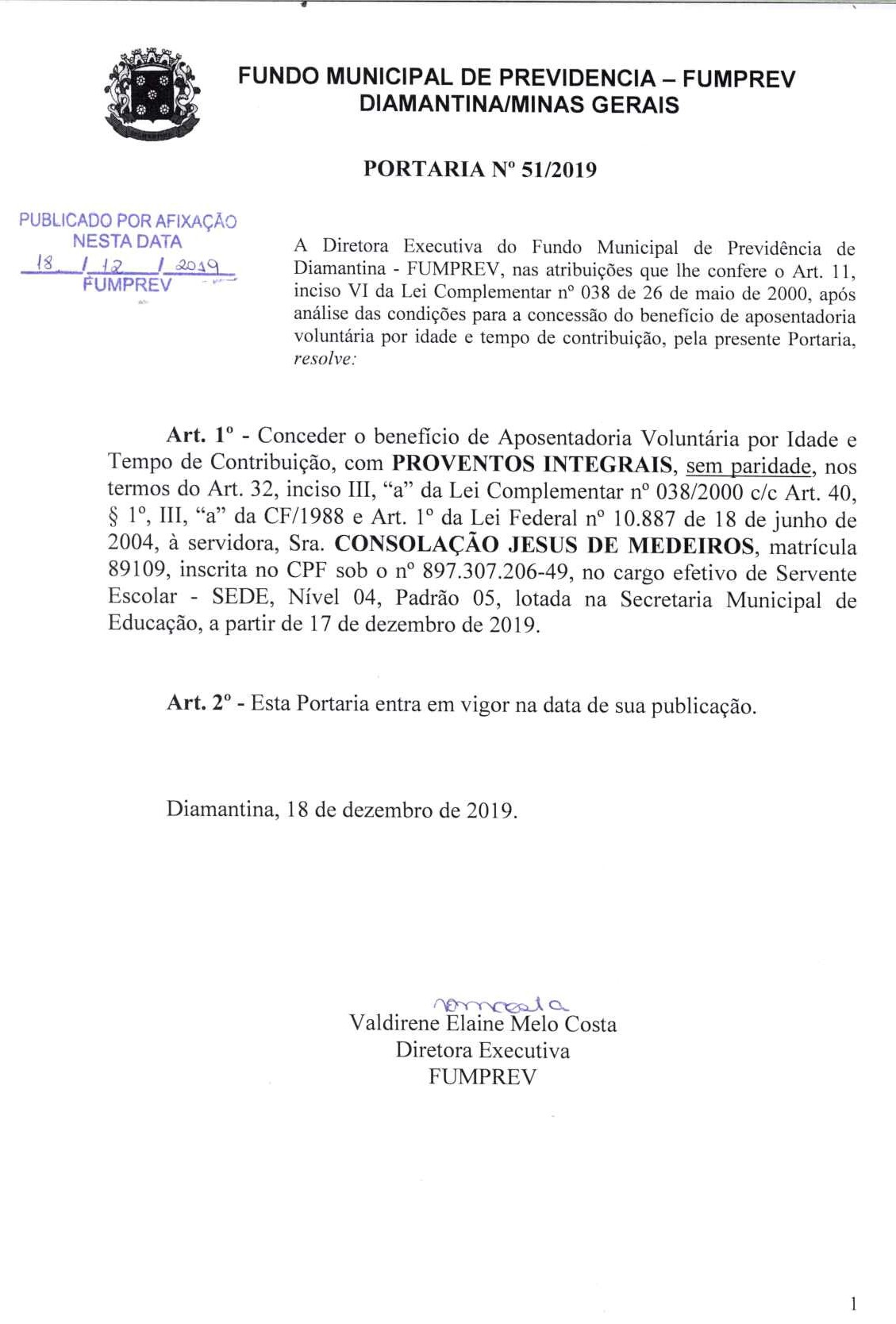 Portaria 51 - Consolação Jesus de Medeiros