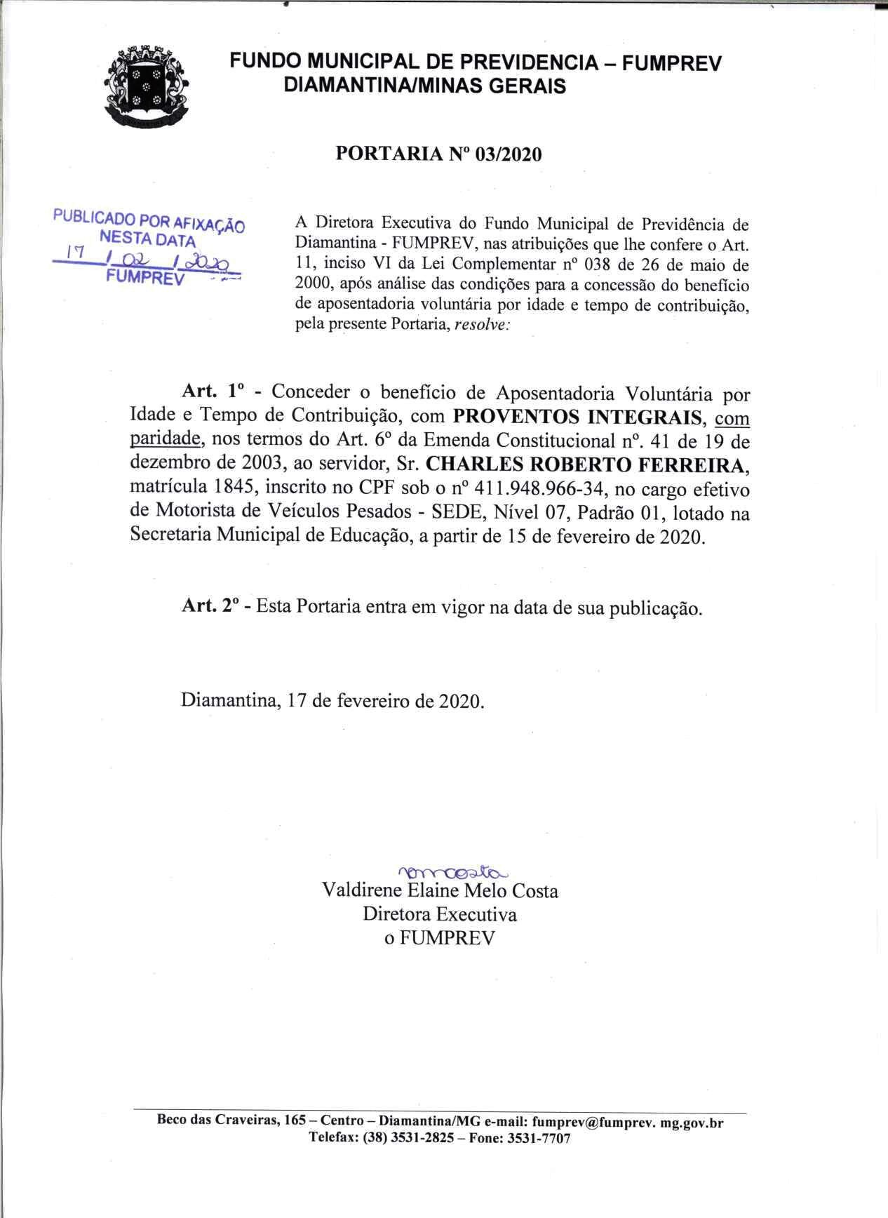 Portaria 003 - Charles Roberto Ferreira