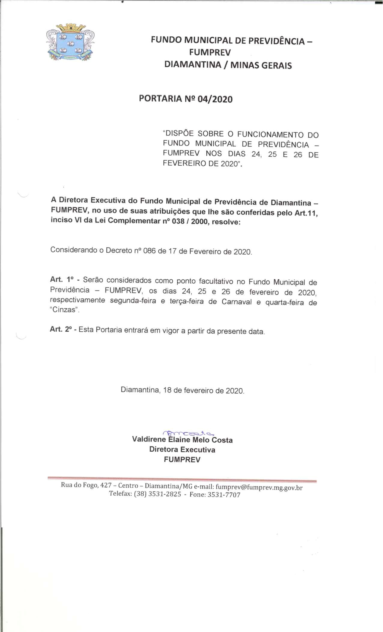 FUMPREV - FUNDO MUNICIPAL DE PREVIDÊNCIA DE DIAMANTINA