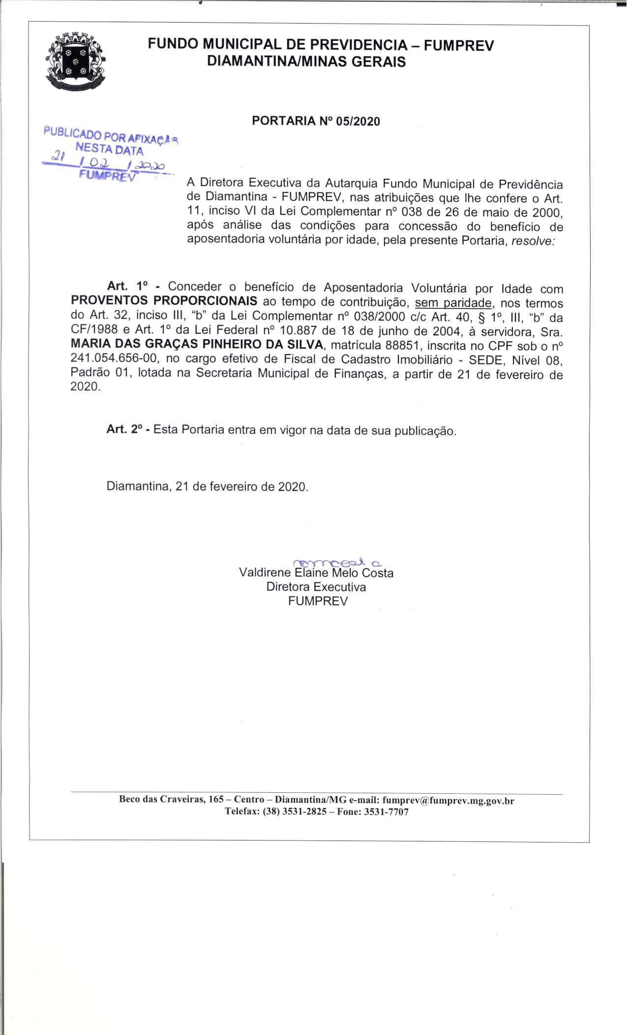 Portaria 005 - Maria das Graças Pinheiro da Silva