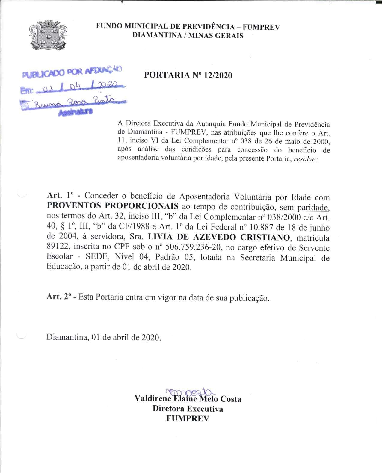 Portaria 012 - Livia de Azevedo Cristiano